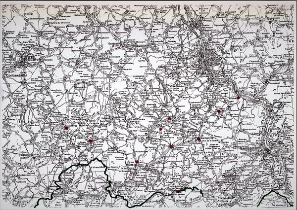 Les points rouges sur la carte de la Vôge qui suit indiquent les localités qui concentrent le plus d’ancêtres.