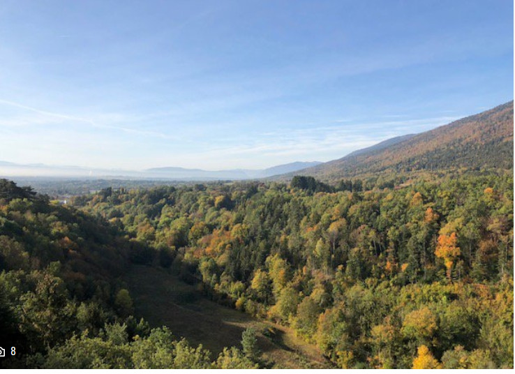 Puis ils arrivent au pays des collines lesquelles forment un arc qui leur vaut le nom de monts Faucilles : c'est au sommet de ces dernières que le peuple leuque arrive au terme de sa longue marche. Au loin, une ligne bleuâtre, presque unie marque la crête des montagnes puissantes du massif vosgien. C'est une citadelle géante, leur cercle menaçant borde l'horizon tout entier. Si elle n'est qu'un froid et dur squelette de granit et de pierre,la nature l'a parée d'immenses forêts : la noire armée de sapins et la blancheur des hêtres. En contrebas, devant eux s'étale une une immense forêt de feuillus, si conforme à son désir qu'ils appellent cette contrée Vogesus.